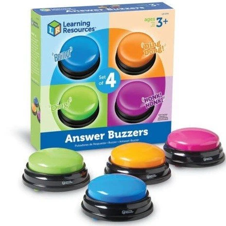 Get children actively engaged in learning with this set of 4 answer buzzers! Liven up games and other activites at home or in the classroom. With four unique sounds you’ll be adding personality to team play!Â