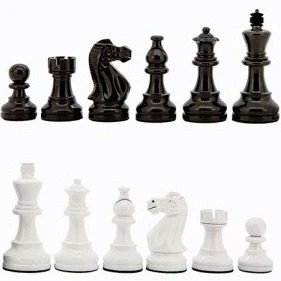 Dal Rossi Black and White chess pieces triple weighted and made of acryllc in a gloss finish. Beautifully crafted, well sized and each piece has a good solid weight,ready for their next move.
