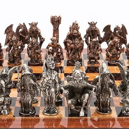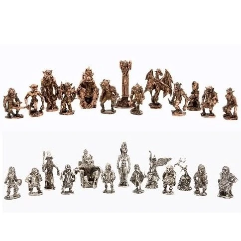 A magnificient set of weighted metal pieces in Lord of the Rings like designs will be sure to satisfy fantasy and chess lovers alike.