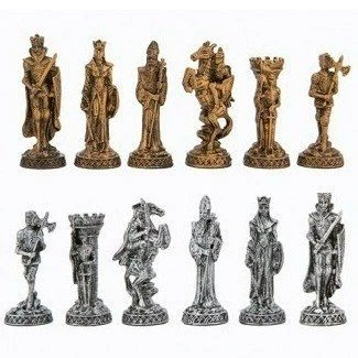 A magnificently elegant set of chess pieces in a Medieval style from Dal Rossi Italy. Nicely weighted metal pieces with excellent detail that you expect in quality Dal Rossi chess pieces.