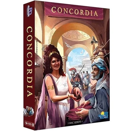 Concordia is a peaceful strategy game of economic development in Roman times. Instead of looking to the luck of dice or cards, players must rely on their strategic abilities. Be sure to watch your rivals to determine which goals they are pursuing and where you can outpace them! In the game, colonists are sent out from Rome to settle down in cities that produce bricks, food, tools, wine, and cloth. Each player starts with an identical set of playing cards and acquires more cards during the game. These cards serve two purposes: