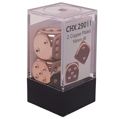 These 2 beautifully designed dice by the specialist dice maker Chessex have a copper colour and a metallic finish. This is a pair of 6-sided dice that can be used to put some flair into any dice game!