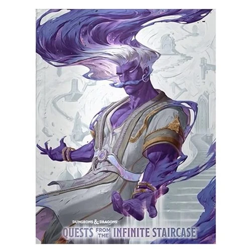 The Infinite Staircase spirals in a dreamlike expanse, with doors leading to fantastic realms. It’s home to the noble genie Nafas, who hears wishes made throughout the multiverse and recruits heroes to fulfill them. These pleas summon adventurers to lost caverns suffused with planar energy, fairytale gardens in the Feywild, futuristic spaceships, and other wondrous locations.