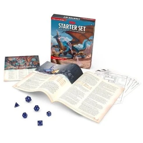 The Dungeons & Dragons Starter Set: Dragons of Stormwreck Isle is your gateway to action-packed adventures in the cooperative storytelling game Dungeons & Dragons, where heroes battle monsters, find treasure, and undertake epic quests. This box contains the essential rules of the game plus everything you need to play heroic characters caught up in an ancient war among dragons as they explore the secrets of Stormwreck Isle.