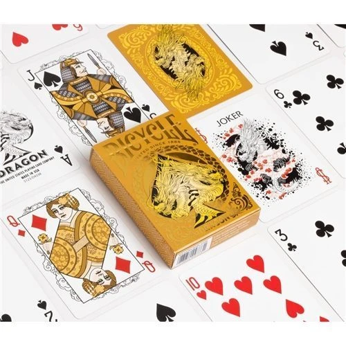 Custom court cards dressed in kimono‐inspired garments will bring a unique flare to your next game; and the brilliant, gold foiled framing around the dragons on the tuck case are sure to be show‐stoppers.