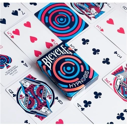 Hypnosis from Bicycle Playing Cards is traditional playing card deck with standard faces, but the playing card back is specifically designed with the cardist in mind. With a borderless back design and hypnotizing, colorful, seamless graphics, the Hypnosis deck from Bicycle Playing Cards is sure to enhance the flow of flourishes, fans, spreads, and more.