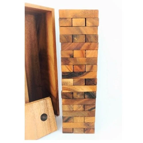 Hours of fun for all the family. Can you slide free a wooden block and stack it back on top? Or will you cause the mighty tower to come crashing down? How high can you go?