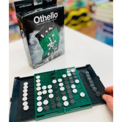 This game is a foldable, travel version of the internationally acclaimed two player strategy game that you can now enjoy on the move. The board will start with 2 black discs and 2 white discs at the centre of the board.