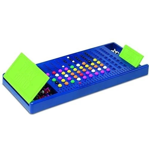 A game of logic and deduction for 2 players. 1 player must guess the other players secret combination by using markers, guessing the colours and place they are located.