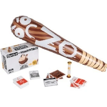Poetry for Neanderthals is a family-friendly party game similar to Taboo where players earn points by getting their teammates to guess words and phrases. The catch is that the “Neanderthal Poets” are only allowed to use single syllable words. If they use any words with more than one syllable, the other team gets to bop them with a 2-foot inflatable club. The team with the most points wins!