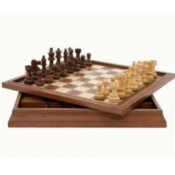 Chess Checkers Backgammon 3 In 1 14 Inch Walnut Box Set By Dal Rossi