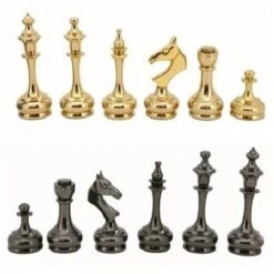 Chess Set Dark Titanium & Silver On 20 Inch Walnut Finish Chess Board By Dal Rossi