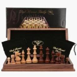 Chess Set Black & White On 20 Inch Walnut Finish Chess Board By Dal Rossi