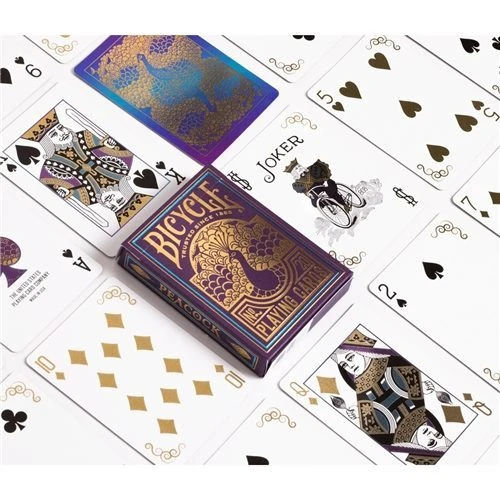 This historic deck design has been re‐imagined utilizing new cold foil technology which features royal purples and deep blues with elegant gold highlights. The card backs as well as faces feature gleaming foil accents including colorful foil court cards and gorgeous gold pips.