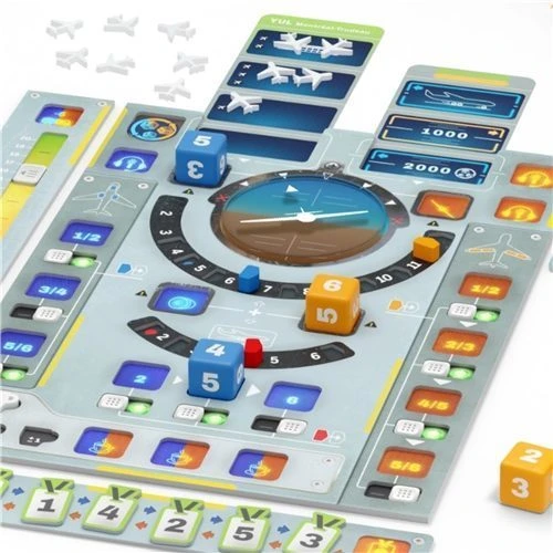 To land your plane, you need to silently assign your dice to the correct spaces in your cockpit to balance the axis of your plane, control its speed, deploy the flaps, extend the landing gear, contact the control tower to clear your path, and even have a little coffee to improve your concentration enough to change the value of your dice.