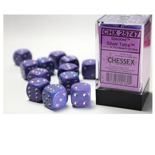 12 beautifully designed purple and blue dice by the specialist dice maker Chessex.