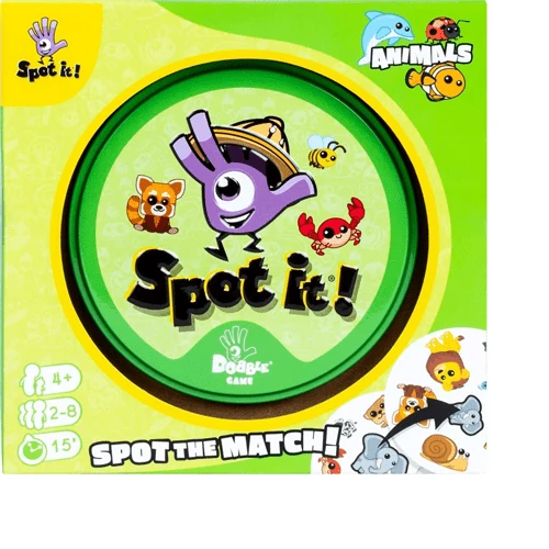 Be on the lookout for creatures of the land, sky, and sea. With adorable animals and only 6 symbols on each card, Spot it Jr.! is ideal for kids aged 4 and up. As always, there is one, and only one, matching animal between any 2 cards. But in this junior variation, each card has one big animal for easier spotting. Spot it Jr.! is a fun way to sharpen kids’ visual perception and cognitive skills. Little ones will love to spot these colorful animals and the variety of images will challenge all ages.