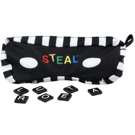 Steal is a fast and furious new letter game of cunning, treachery and outright theft! A hugely exciting game from New Zealand, with all letter tiles contained in a handy mask-shaped fabric bag, allowing it to be played almost anywhere. Steal is suitable for 2-8 players of all ages, easy to learn but more difficult to master.