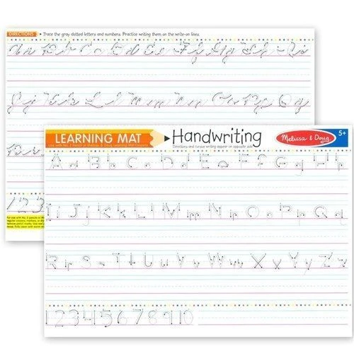Reusable, children can write in their answers with a No. 2 pencil or (not-included) Learning Mat Crayons. Perfect for lunch-time drills, extra practice—and entertainment—at restaurants, and fun supplemental seatwork practice! This Handwriting mat features directions to trace and includes cursive. Perfect for budding little writers!!